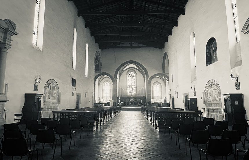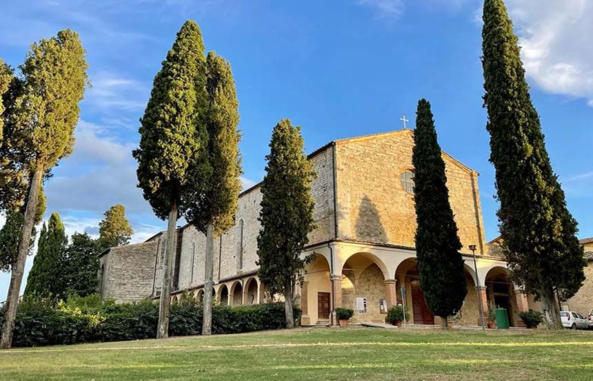 Il convento di San Lucchese, costruito fuori della città di Poggibonsi, comprende anche una basilica edificata secondo il tipico impianto architettonico degli ordini mendicanti. La chiesa presenta una facciata a capanna e un'unica vasta navata, illuminata da grandi finestroni gotici. La navata si conclude con tre cappelle con volte a crociera. Il campanile, invece, è di costruzione più recente, mentre il chiostro si trova alla destra della chiesa. All’interno del convento ci sono importanti opere, come per esempio, il ciclo di affreschi di Cennino Cennini, risalenti al 1388, affreschi di Bartolo di Fredi e di Giovanni della Robbia, dipinti verso il 1517. Nel refettorio del convento ci sono diversi affreschi di Gerino da Pistoia databili 1513 e nel chiostro si trovano delle lunette dipinte da Ferruccio Nicodemo nel 1622. Il complesso fu oggetto di bombardamenti nel corso del secondo conflitto mondiale e sembra, da notizie storiche, che il tetto della basilica sia andato distrutto da un incendio provocato dai colpi di cannone il 9 Luglio 1944.