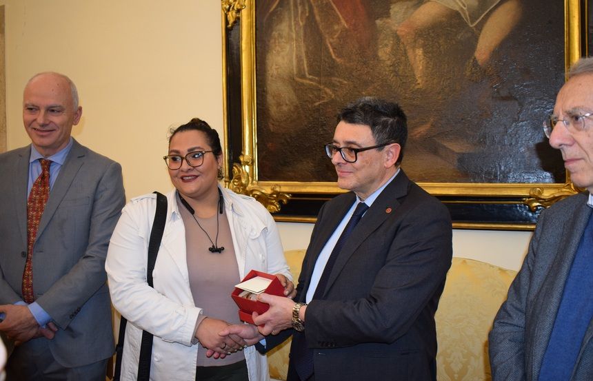 Mona A. è stata quest’oggi accolta al palazzo del Rettorato dal Rettore Roberto Di Pietra, che ha voluto esprimere personalmente alla neo studentessa la vicinanza della comunità accademica.