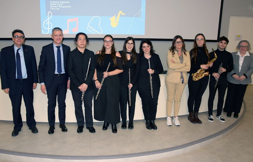 L’evento ha visto poi l’esibizione di allieve ed allievi del Conservatorio di Siena Rinaldo Franci, un ensemble e alcuni solisti coordinato dalla professoressa Lucia Goretti, con il quale l’Aou Senese ha sottoscritto recentemente un protocollo di collaborazione per attività e iniziative di welfare culturale. In particolare hanno suonato ai flauti Silvia Corsi, Aurora Ruspantini, Arianna Argiento e Cao Can, all’oboe Federico D’Alesio e al sassofono Lorena Moretti, con grande apprezzamento e interesse da parte dei presenti.