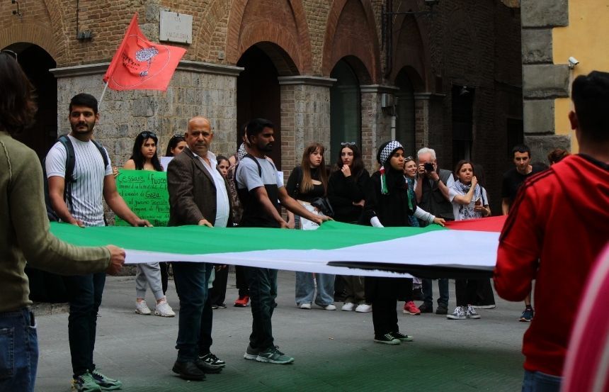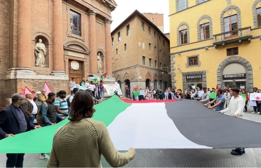 Anche a Siena come in altre città italiane domenica 15 Ottobre, diverse realtà cittadine sono scese in piazza per prendere parte al presidio in solidarietà al popolo palestinese. A mobilitare la manifestazione - si legge nelle note condivise dalle associazioni studentesche - “La richiesta di porre fine all’escalation di violenza perpetrata negli ultimi giorni e per chiedere la fine dell’occupazione della Palestina’’.