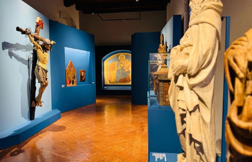 Le opere sono esposte su pannelli autoportanti e appoggiati alle murature lungo il perimetro delle stanze, seguendo un andamento cronologico. Per ogni ambiente è stata studiata una colorazione diversa in maniera da caratterizzarne l'epoca ed esaltare con il fondo, le tecniche utilizzate per la realizzazione dei manufatti artistici. Le didascalie e i testi esplicativi sono state inseriti, per quanto possibile, nei pannelli espositivi, in un modo pulito ed essenziale, affinché facessero parte di un unico omogeneo nel quale l'intenzione è far risaltare l'opera d'arte. La realizzazione tecnica dell'allestimento è stata affidata ad aziende e professionalità di elevata competenza del territorio e i restauri e le manutenzioni delle opere a restauratori altamente qualificati.