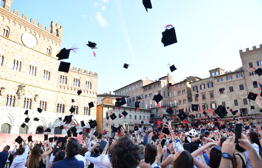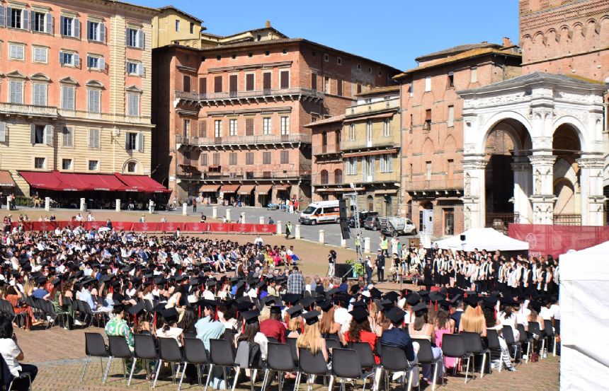 Pomeriggio di festeggiamenti sabato 15 Giugno a Siena per i nuovi dottori e dottoresse dell’Università di Siena che hanno conseguito il titolo di laurea, triennale o magistrale, nell’ultimo anno accademico e che sono stati celebrati nella festa di laurea del Graduation Day in Piazza del Campo.