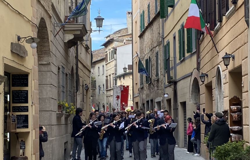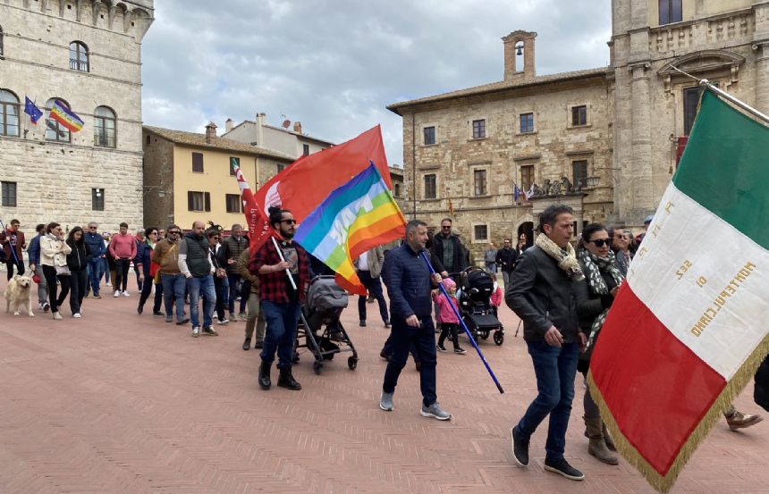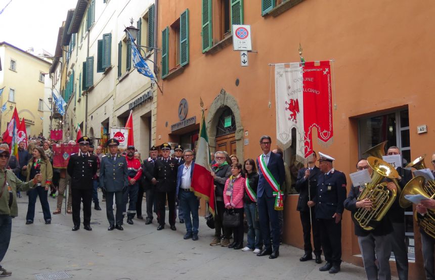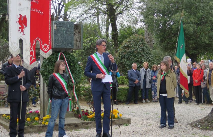 Una vera festa di popolo quella che si è tenuta a Montepulciano per le celebrazioni del 25 Aprile organizzate dall'Amministrazione comunale, in collaborazione con l’ANPI locale. Il corteo è partito da piazza Grande sulle note di Bella Ciao suonate dalla Banda Poliziana, ha attraversato le vie del centro storico sostando prima a Borgo Buio, dove è stata deposta una corona d’allora e suonato l’inno nazionale per ricordare l’impiccagione del giovane partigiano Giuseppe Marino, per poi terminare al Giardino di Poggiofanti. Qui il sindaco Michele Angiolini e la Presidente di ANPI Montepulciano Irene Bettollini, hanno tenuto due interventi accomunati dalla volontà di ribadire l’importanza del 25 aprile e di respingere ogni tentativo di revisionismo storico.