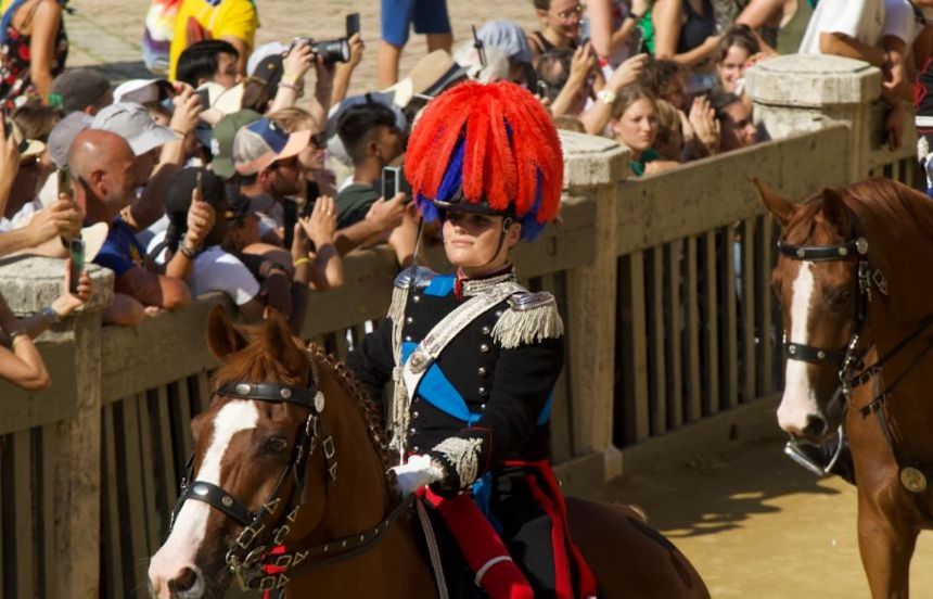 Una piazza del Campo gremita quella di questa sera, 16 Agosto 2023. Tante le persone ad assistere alla carriera dell'Assunta, fra popoli in piazza e turisti curiosi. Tanti gli applausi alla sfilata del Drappello dei Carabinieri e molti gli occhi attenti all'uscita del Corteo Storico.