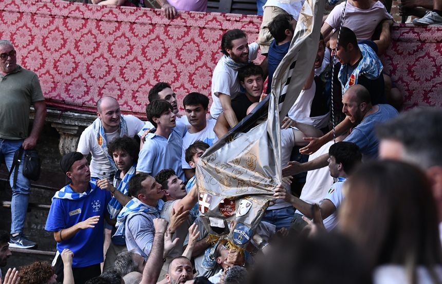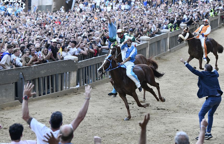 Sono state due le mosse non valide, segnalate dallo scoppio del “mortaretto”. Il popolo dell’Onda, dopo la corsa, si è recato in trionfo con cavallo e fantino presso la Collegiata di Santa Maria in Provenzano per rendere omaggio alla Madonna di Provenzano. Il fantino Carlo Sanna detto Brigante, nato a Oristano il 20 marzo 1989, è alla sua terza vittoria (su un totale di sedici Carriere corse) dopo quelle del 16 agosto 2017, sempre con il giubbetto dell’Onda su Porto Alabe e quella del 16 agosto 2023 con il giubbetto dell’Oca su Zio Frac, giunto scosso al bandierino. Il cavallo Tabacco, castrone sauro di dodici anni, è alla sua prima vittoria su sette Palii corsi. Capitano della Contrada Capitana dell’Onda è Alessandro Toscano, Fiduciari sono Guglielmo Ascheri, Jacopo Castagnini e Mirko Gentilini. Priore è Massimo Spessot, Barbaresco Leonardo Scelfo. L’Onda è alla sua quarantaduesima vittoria. I dieci cavalli che hanno corso il Palio sono tornati tutti regolarmente nelle stalle delle rispettive Contrade.