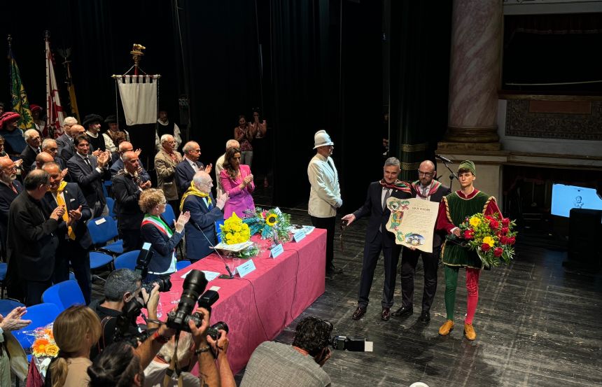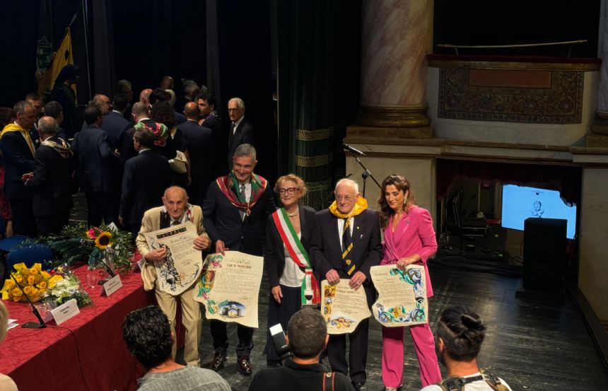 Siena ha celebrato i suoi cittadini più meritevoli con la cerimonia della consegna del Premio Mangia e delle Medaglie di Civica riconoscenza. Questa mattina, giovedì 15 agosto, sono stati infatti conferiti il Mangia 2024 a Luca Venturi per aver “contribuito ad accrescere la fama di Siena nel mondo” e le Medaglie all’Associazione culturale “La Diana”, a Emilio Frati e a Paolo Goretti, “che si sono resi, con la propria opera, cittadini benemeriti”.