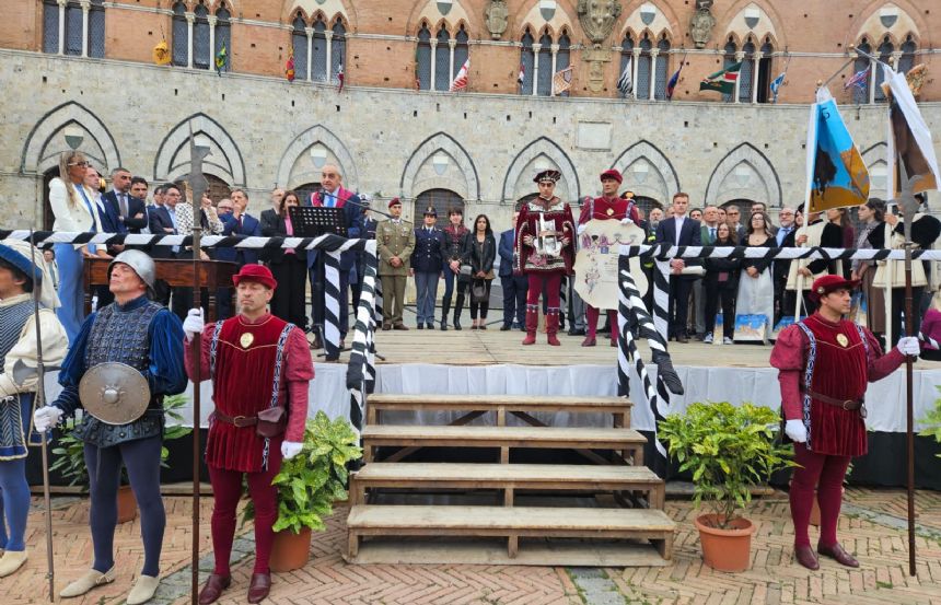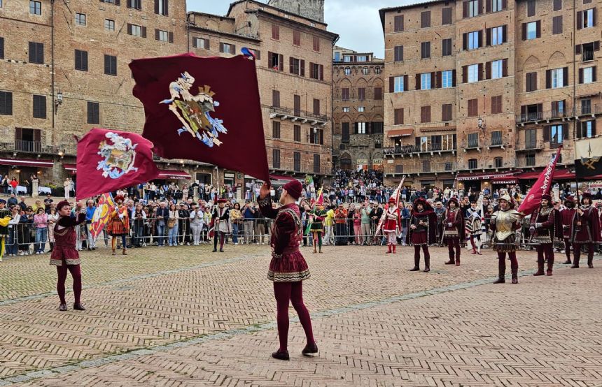 E’ stato consegnato ufficialmente oggi, domenica 28 settembre, alla Contrada della Torre il Masgalano 2025, durante la cerimonia che si è tenuta a partire dalle ore 17 in piazza del Campo a Siena, alla presenza delle autorità cittadine e dei Priori e dei paggi delle diciassette Contrade. Durante l’evento sono stati consegnati anche i “bandierini” ai proprietari dei cavalli vincitori dei Palii del 2025 (Diodoro a luglio e Anda e Bola ad agosto). Il Masgalano è il premio assegnato alla Contrada la cui comparsa risulta essere la migliore per eleganza, dignità di portamento e coordinazione nel corso del Corteo Storico che precede le due Carriere di luglio e agosto.
