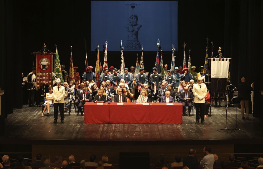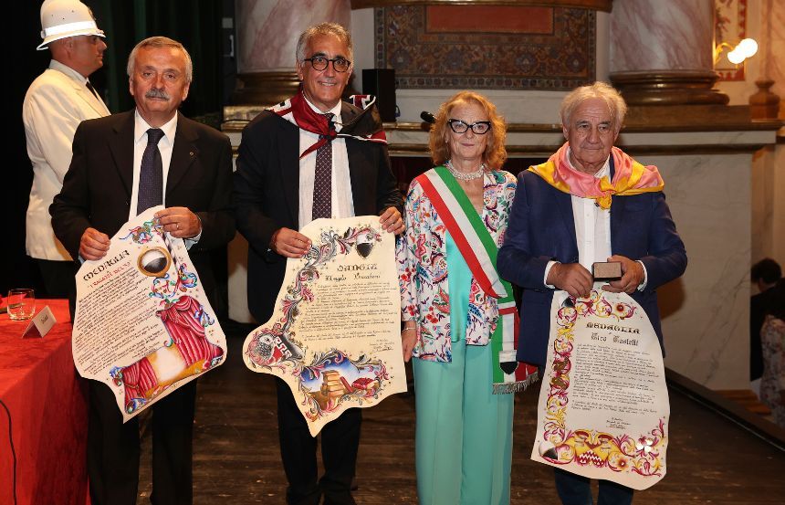 Si è tenuto stamani al Teatro comunale dei Rinnovati il solenne appuntamento del Premio Mangia 2023. Il sindaco Nicoletta Fabio ha conferito ad Angelo Riccaboni, candidato dalla Priora Contrada della Civetta, l’ambito riconoscimento della città; a Ciro Castelli (proposto dalla Contrada di Valdimontone), e a “I ragazzi del ‘53” (proposto dalla Nobile Contrada del Nicchio) le medaglie di civica riconoscenza.