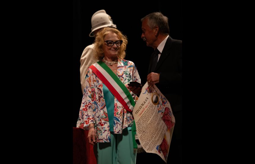 E’ iniziato così lo spettacolo del mattatore Reale. Una sapiente quanto divertente interpretazione di un testo, tutta ironia e sarcasmo, affidatogli da Massimo Biliorsi, che per l’occasione, ha vestito i panni di sceneggiatore. Con un vero e proprio avvertimento tanto da definire “questo premio un pericolo: la città dimostra che non è più quella di un tempo”.