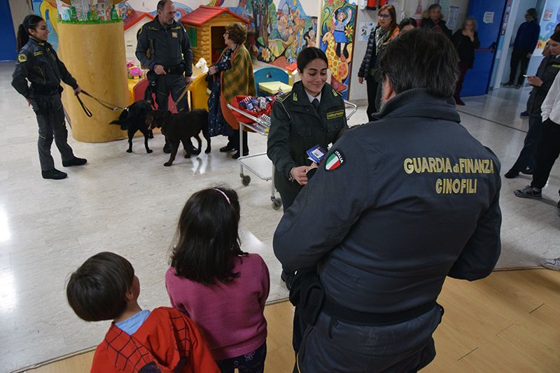 Come da tradizione, grande entusiasmo è stato suscitato dalla dimostrazione delle Unità Cinofile di Livorno che, con la partecipazione dei cani Giambo e Dely, hanno mostrato le grandi abilità dei due labrador impegnati con la GdF nelle operazioni speciali e nei controlli effettuati nei caselli autostradali, porti e aeroporti. Ad accogliere la Guardia di Finanza i professionisti del Dipartimento della Donna e dei bambini, della Neuropsichiatria infantile e le insegnanti della Scuola Ospedaliera.