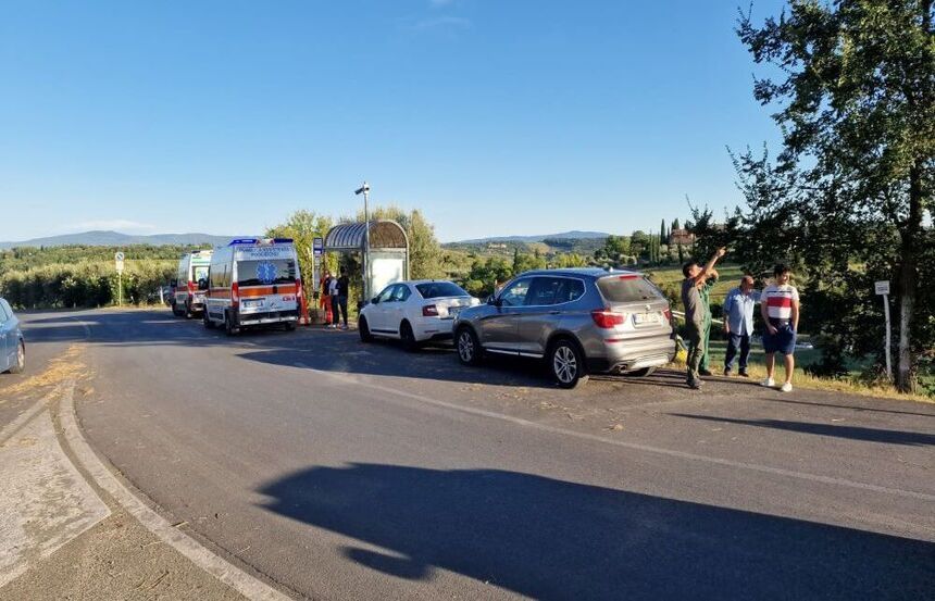 Il tragico incidente è avvenuto poco dopo le 17.00 a San Gimignano nei pressi di viale Roma lungo la SP1, tra la rotatoria delle 4 Strade e la curva di Manetto.