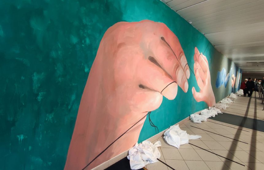 Tante mani enormi rivolte verso gli altri. È questa l’immagine che caratterizza “I grandi gesti”, il nuovo murale posto nell’ingresso principale dell’ospedale di Campostaggia inaugurato oggi. L’opera dell’artista siciliano Ligama nasce nell’ambito del progetto “Arte che cura”, realizzato in collaborazione con il Lions Club “Valdelsa” e da questo finanziato.