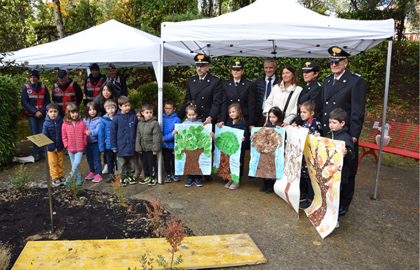 Le bambine e i bambini del polo educativo mettono a dimora, nel parco ''Lisa Serafini'', alcune piante donate dai Carabinieri e l’Arma ha inoltre donato all'Aou Senese un esemplare dell'Albero di Falcone