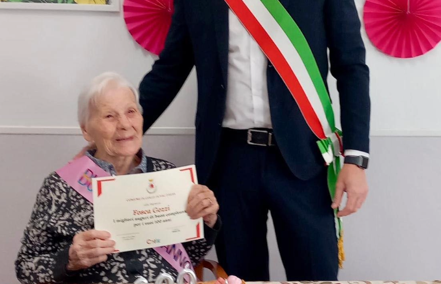 Il consigliere Nico Ferrandi ha portato a nome del Comune gli auguri ufficiali a Fosca Gozzi, che ha raggiunto il traguardo del secolo di vita