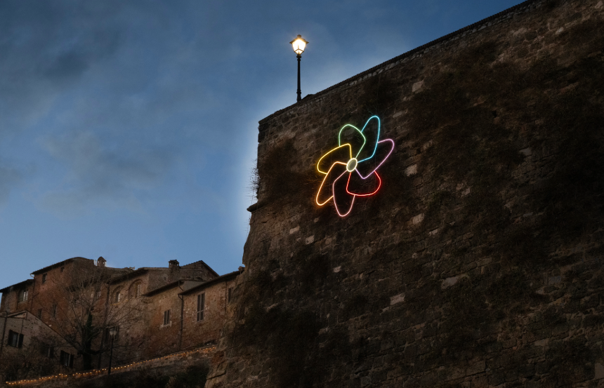 Il simbolo dell’associazione diventa una grande girandola luminosa sulle mura del Baluardo: un omaggio alla città e alla sua energia