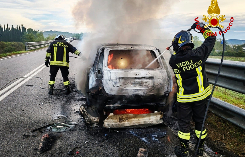 Intervento di Polizia Municipale e Vigili del Fuoco per un'auto incendiata all'altezza del vivaio