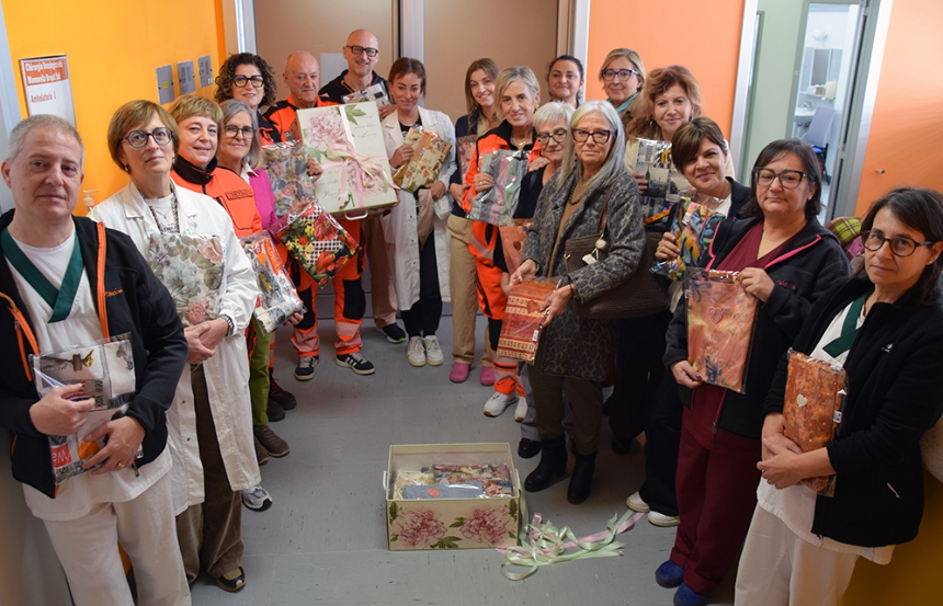 L'Assistenza Pubblica Chiusdino e il gruppo ''Il filo che unisce'' consegnano i manufatti alla Chirurgia oncologica della mammella, guidata dal professor Neri, per umanizzare le cure