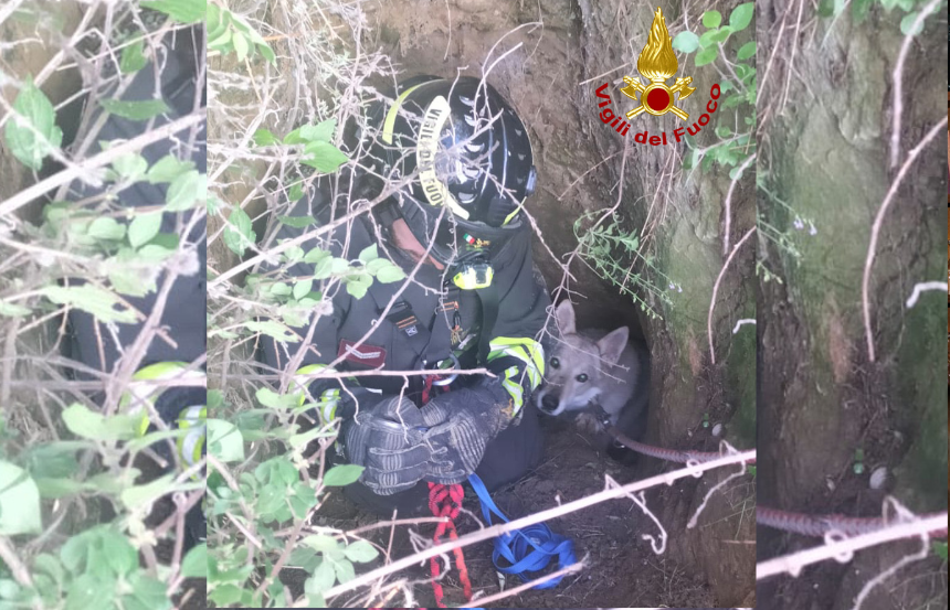 Paura a Siena per un cane lupo cecoslovacco caduto in una cavità profonda tre metri: i Vigili del Fuoco recuperano Freia e la riconsegnano ai proprietari