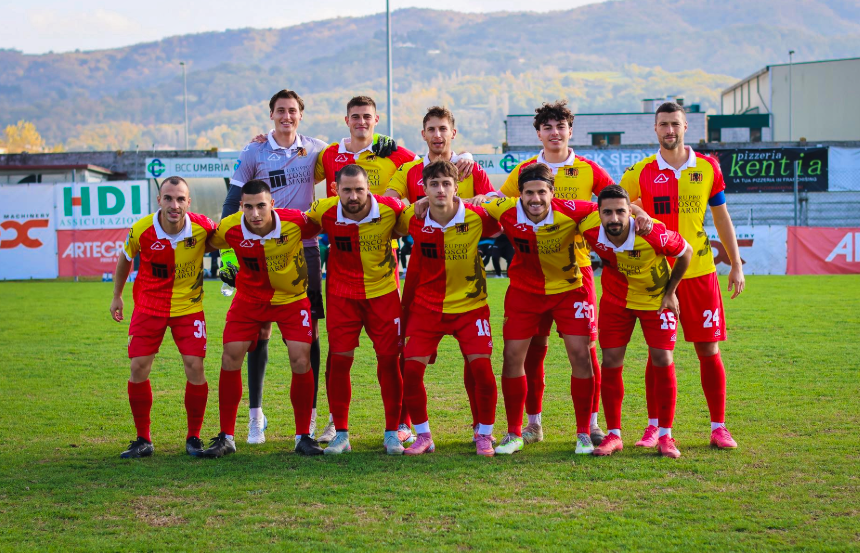 Ai giallorossi non basta la rete di Boriosi, doppietta di Tomassini e gol di Qendro per gli umbri